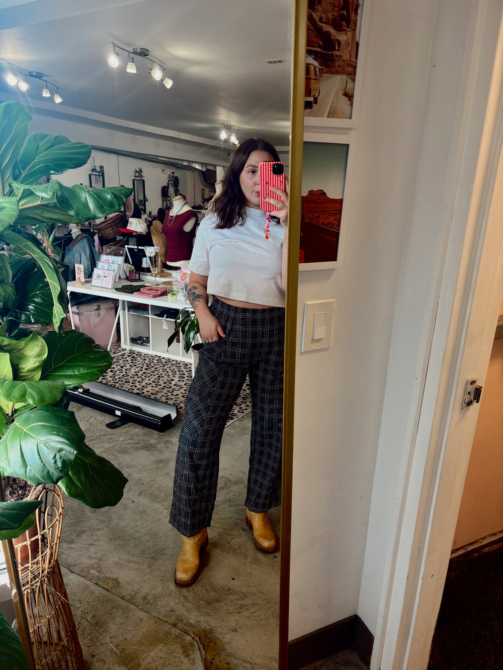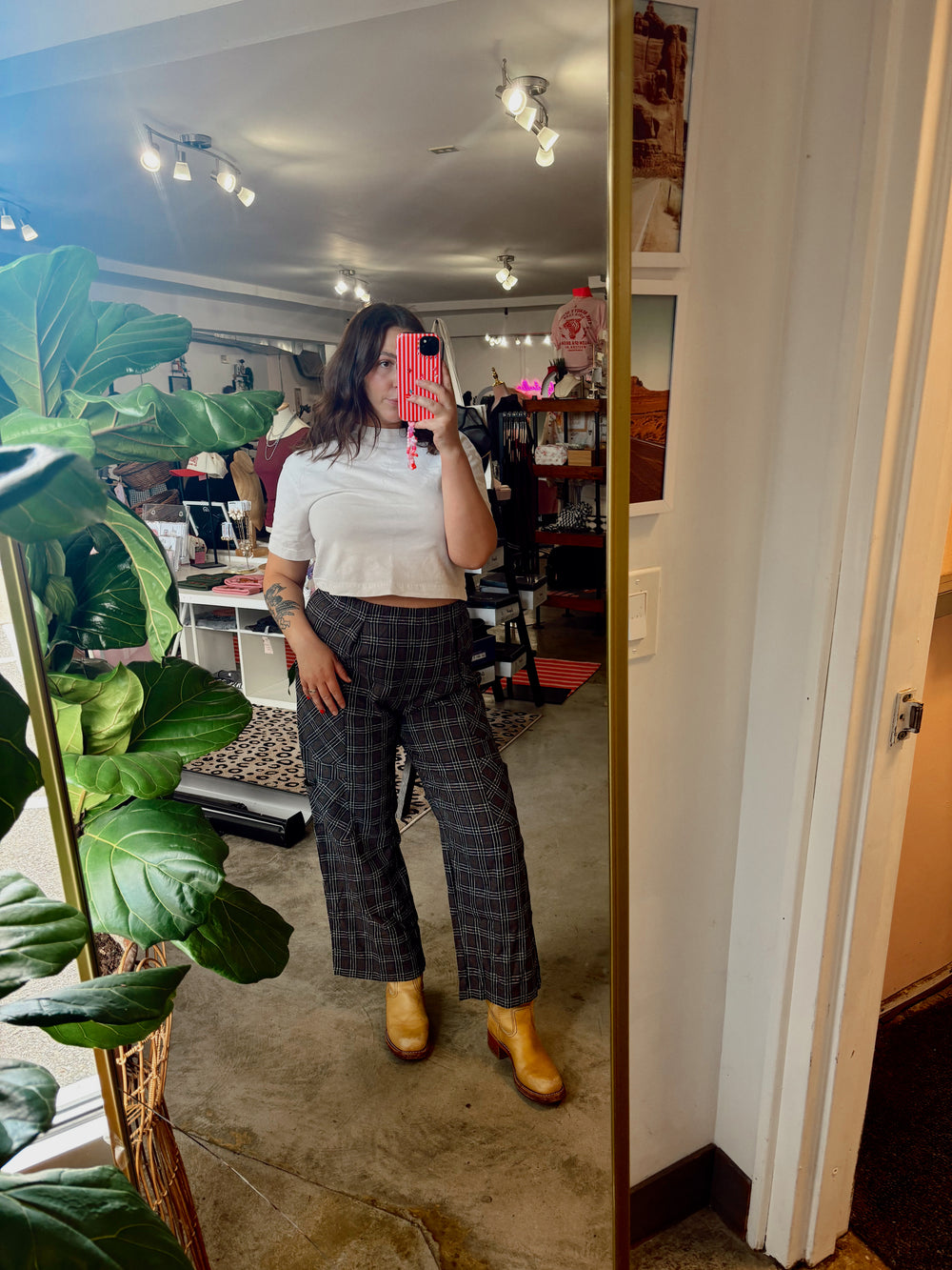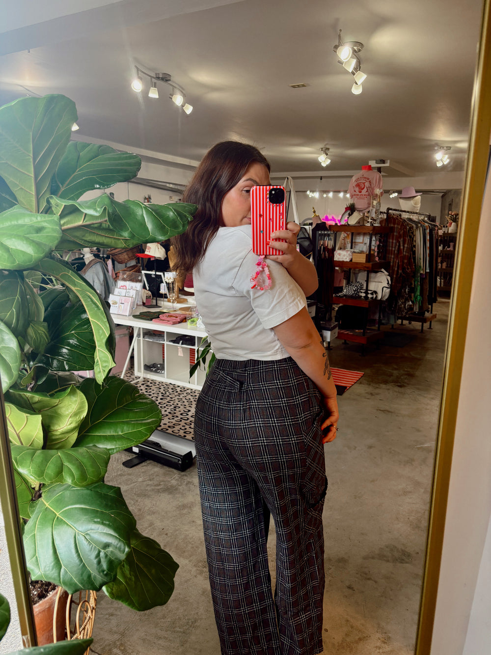 Where laid-back comfort meets cool-girl edge. These Plaid Printed Cargo Wide Leg Pants feature a relaxed, flowy silhouette with a modern cargo twist. Designed with a comfy elastic waistband, functional side pockets, and an adjustable back slider for the perfect fit, they’re made for effortless styling. Dress them up with a fitted top or keep it casual with a tee — either way, they’re a standout.