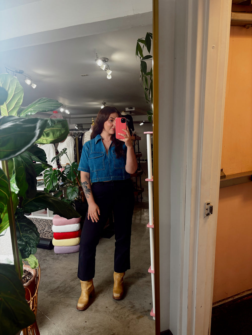 Farrah Denim V-Neck Crop Top